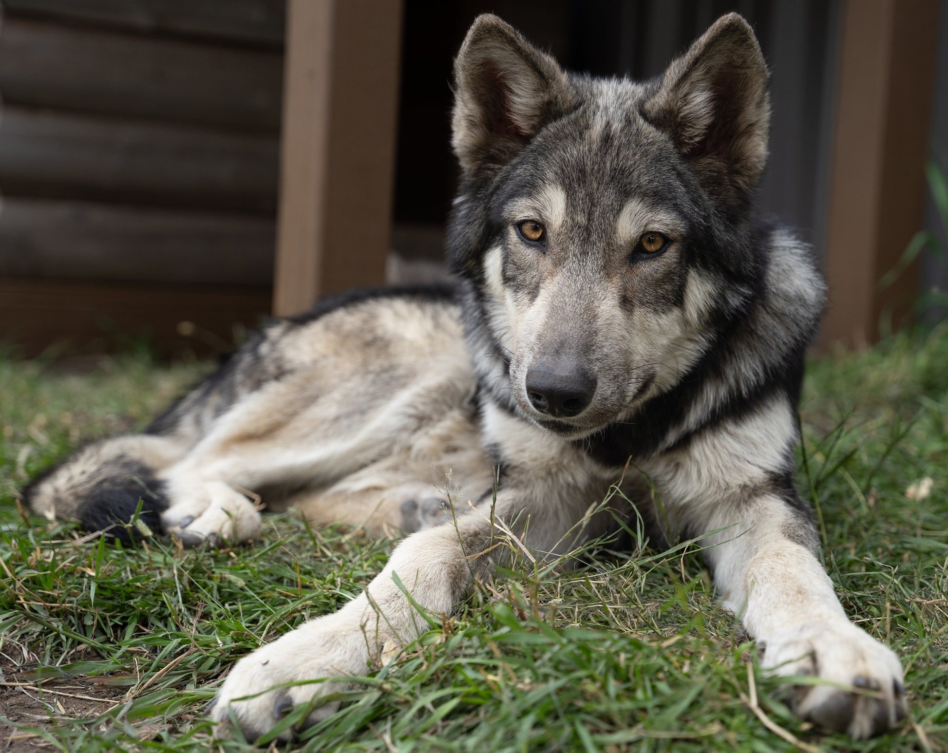 Atlas was rescued from the streets of California in July of 2024 with 3 other young pups and arrived at Mission:Wolf in August of that same year.